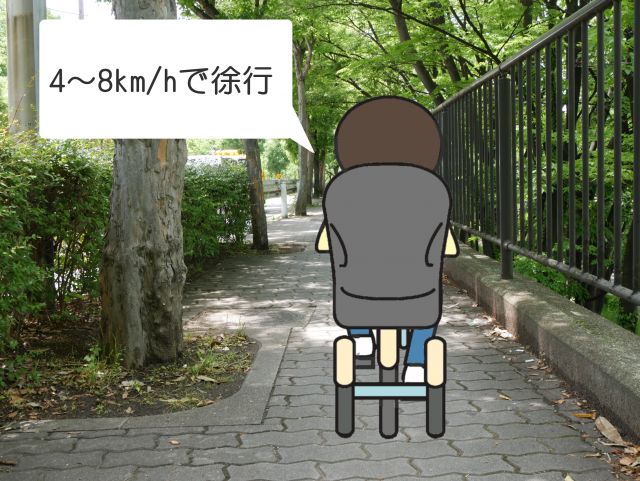 人とすれ違うのがやっとの歩道は、徐行運転です