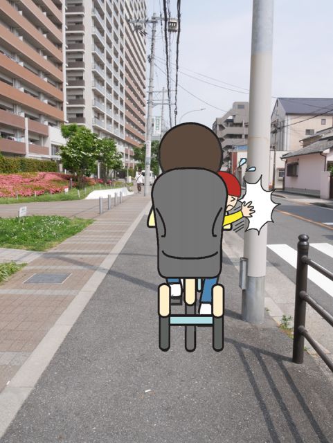 歩道側 電柱や柵にぶつからないように気をつけてください