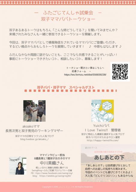 関東で双子ママパパとして活躍されている3名の方にご協力いただき、イベントを盛り上げていきたいとおもいます。