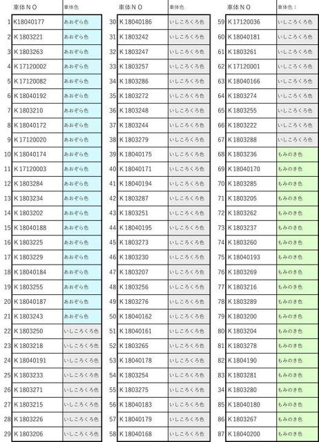 車体番号リスト