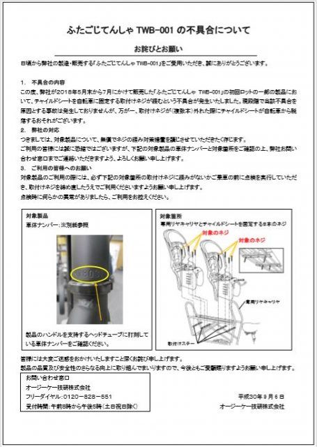いつも「ふたごじてんしゃ」を安全に乗っていただきましてありがとうございます。