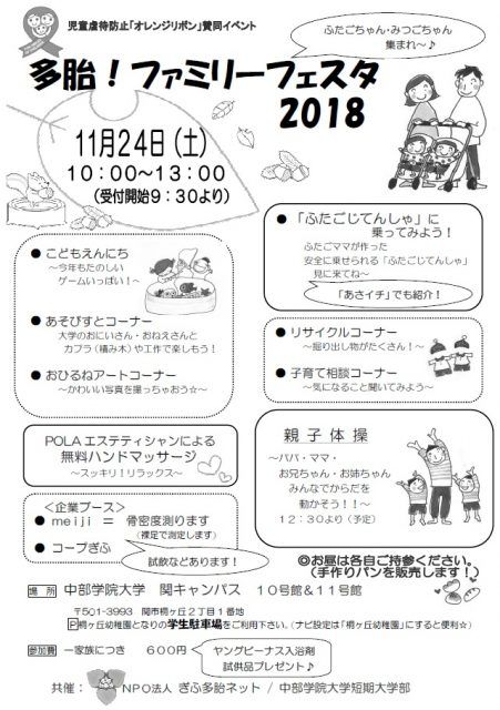 多胎ファミリーフェスタ2018 イベント内容