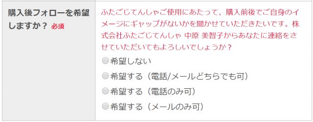 アフターフォローのご案内は、「メール」OR「電話」となります。